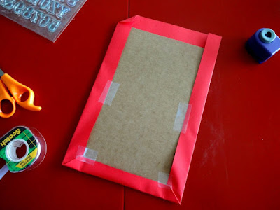 Tape the paper on your cardboard piece, it doesn't have to be perfect that's part of the DIY charm.